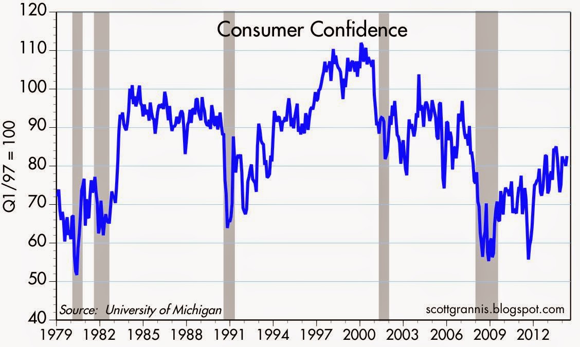 The chart above compares the actual growth of real GDP (blue) with its long-term trend of about 3% per year. Never before has real GDP fallen below its trend by so much for so long—and still, as we are about to enter the sixth year of recovery, there is no sign of a true recovery. The current "gap" between actual GDP and its long-term trend is about 10% by my calculations. That translates into a national income shortfall of roughly $1.7 trillion.